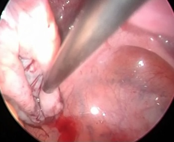 Slika 3. Prikaz preostalog tkiva jajnika jajnika nakon laparpskopske operacije endometriotične ciste